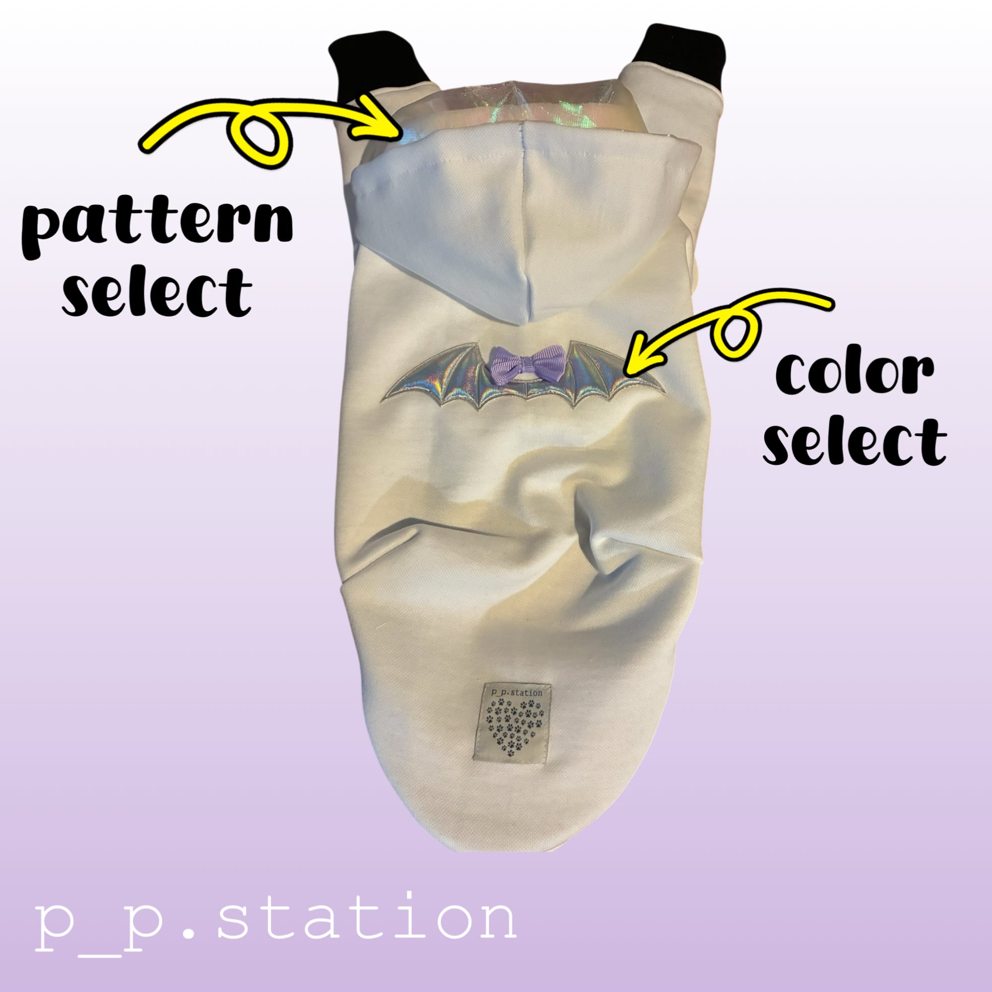 ホワイトのしっかり目のミニ裏毛素材を使用した、デビルモチーフの可愛いパーカー。