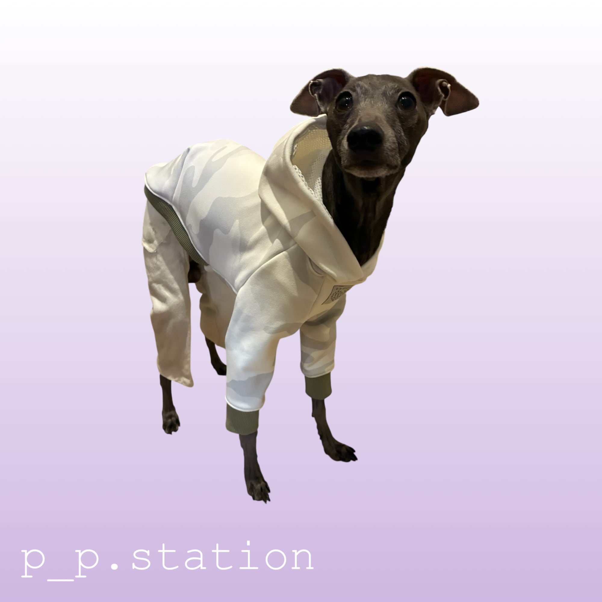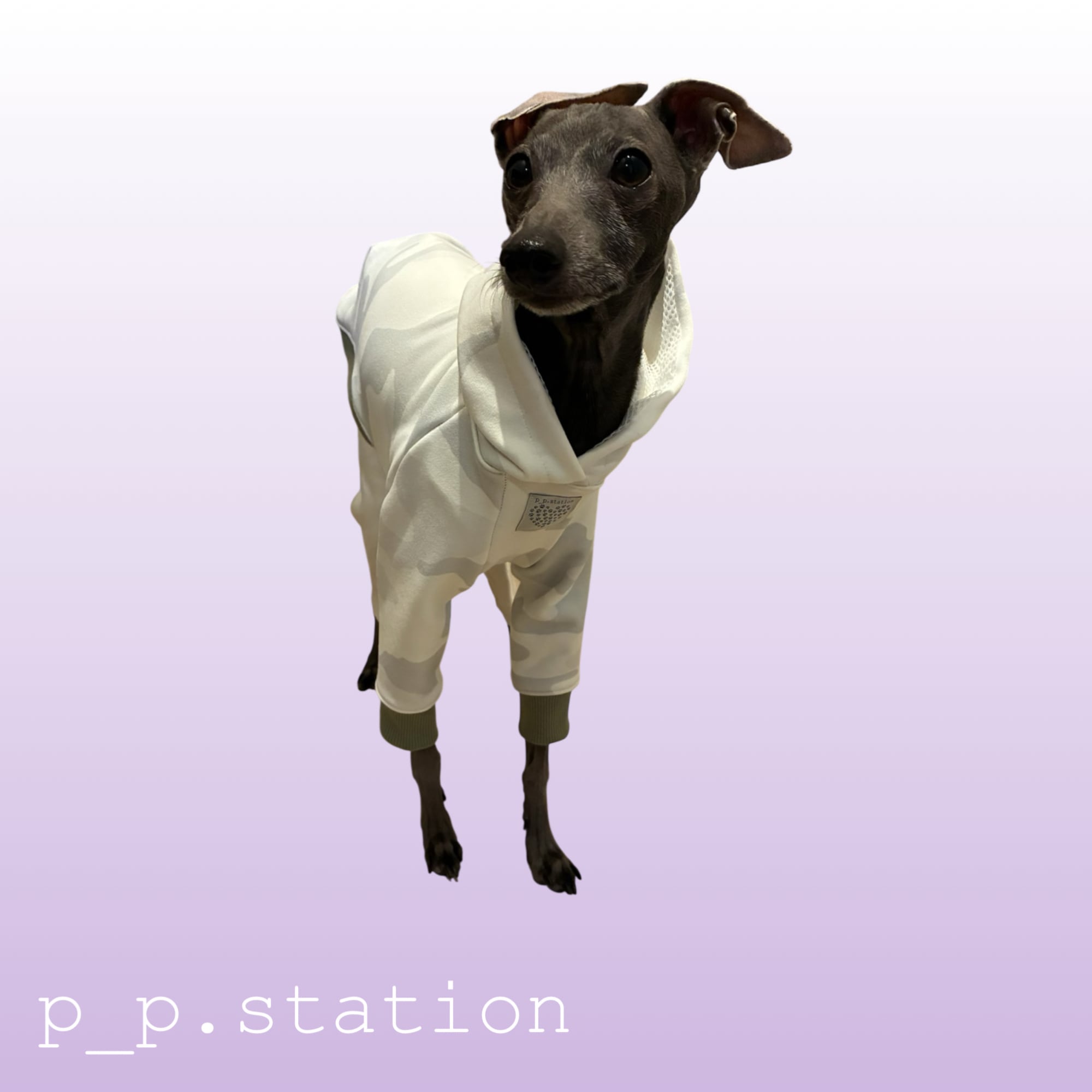やさしい白に、ほんのり浮かぶニュアンス迷彩。強さのあるカモフラージュを、ミルキーなトーンでナチュラルに仕上げました。