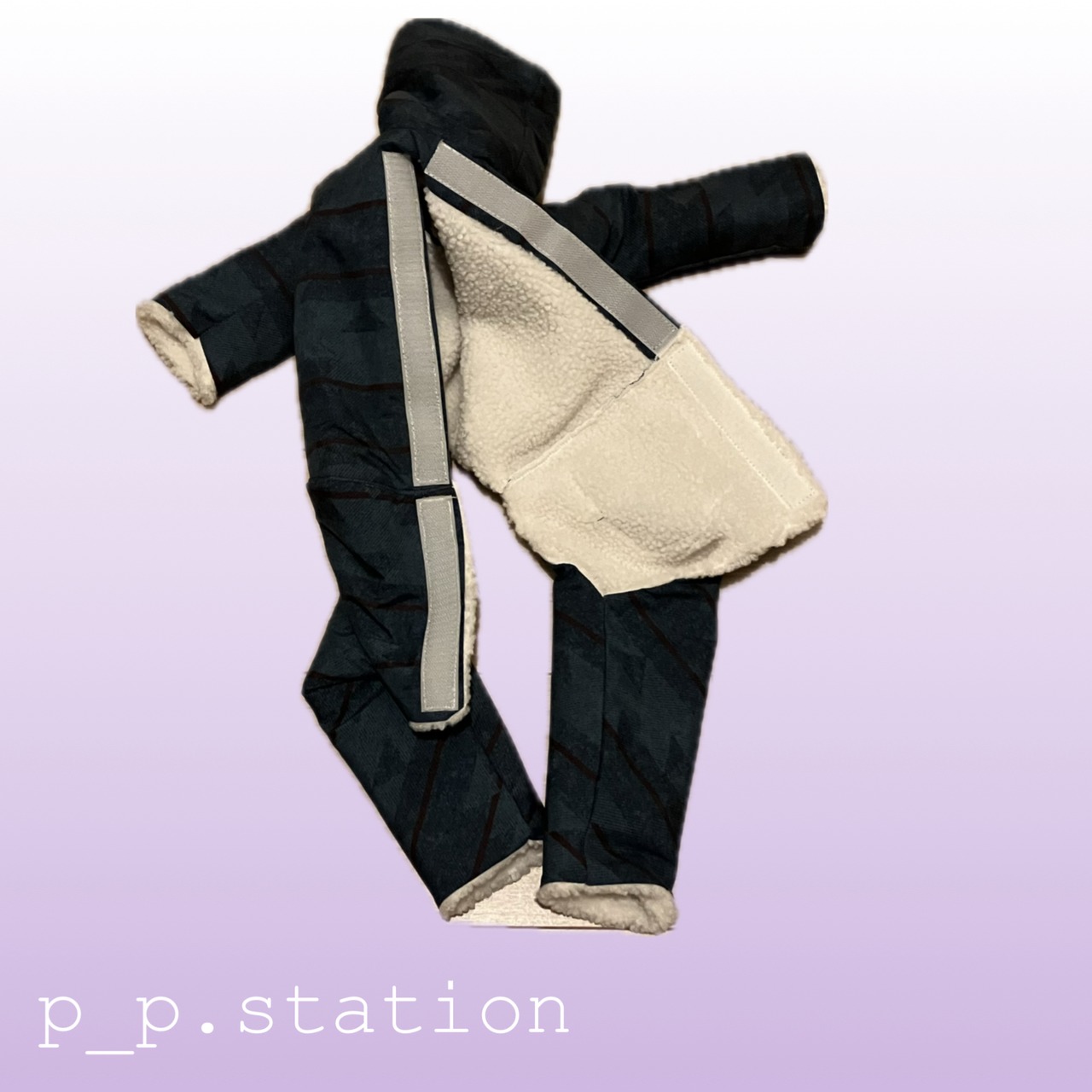 総裏ボアで温かく、背中の開閉は首元から尻尾の付け根までフルオープンします。