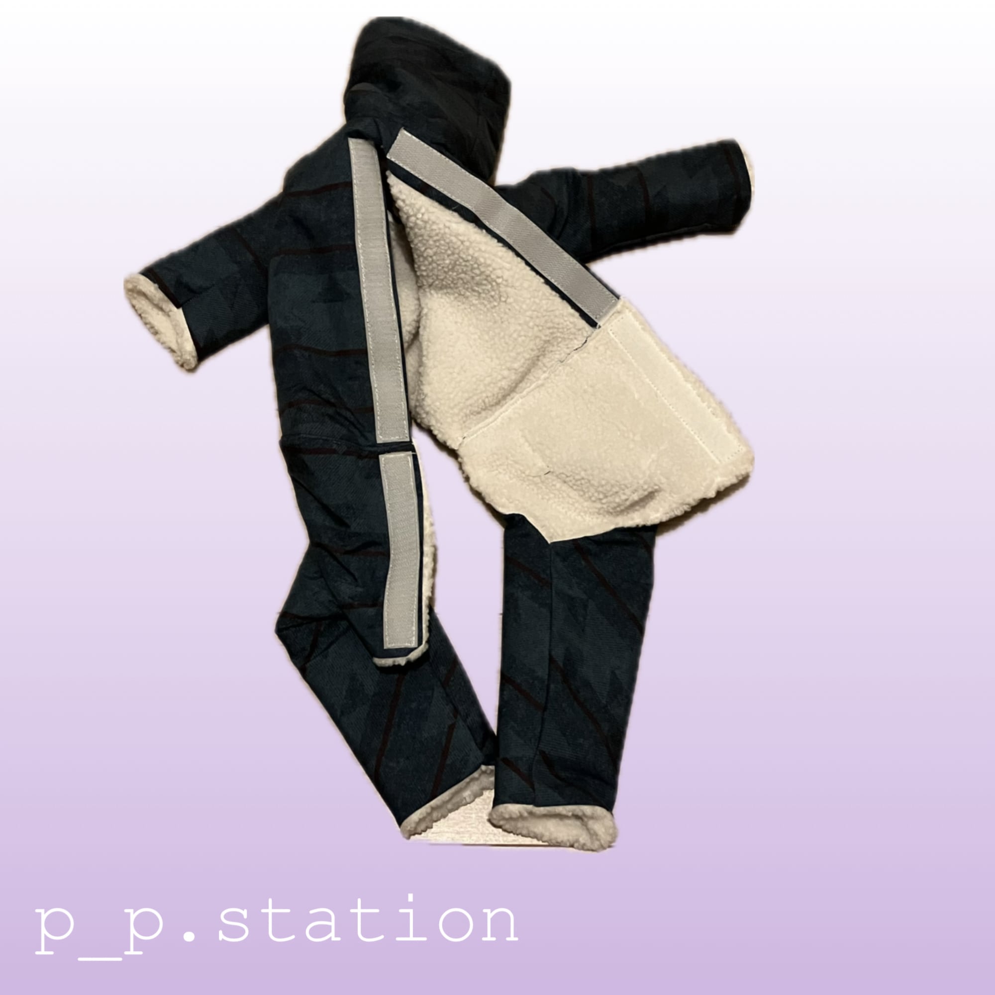 着せやすさと動きやすさ保温性を兼ね備えた、p_p.stationの撥水防寒ジャンプスーツ。