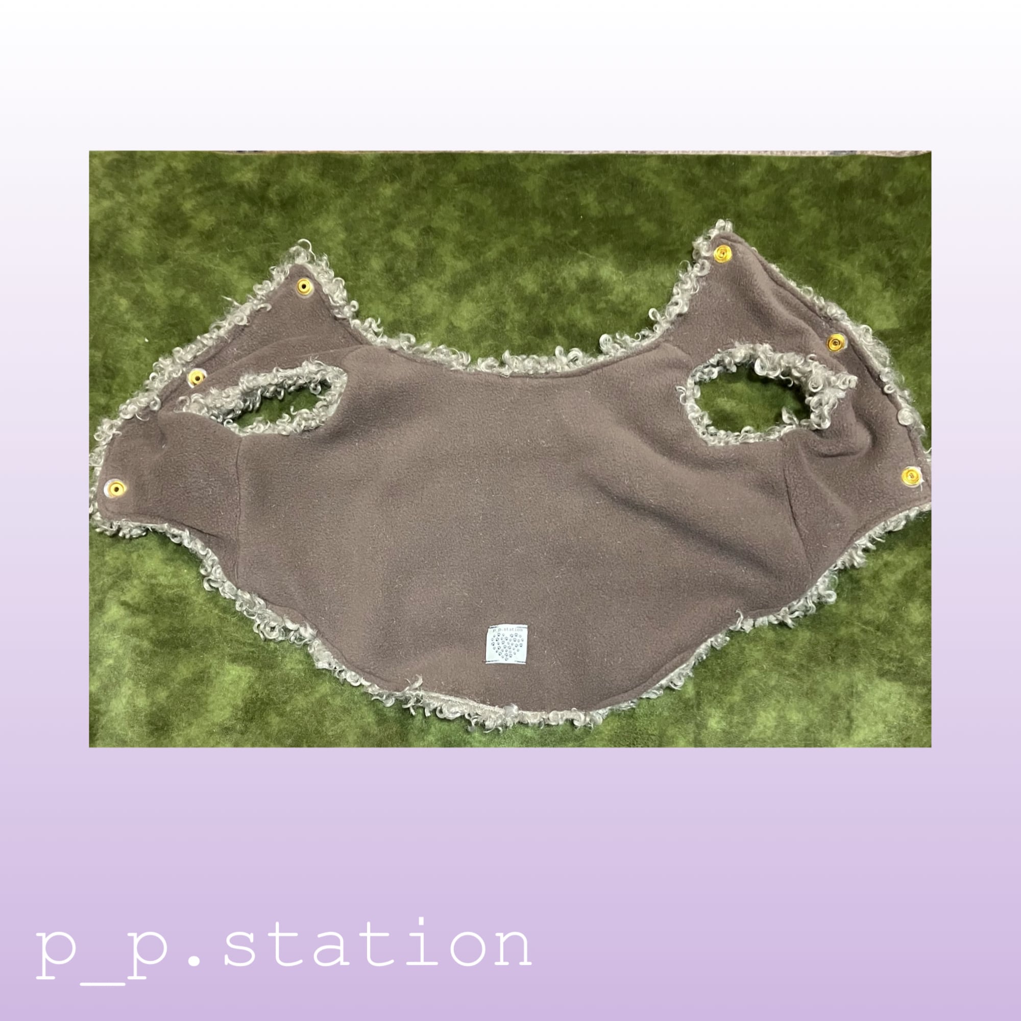 クルクルのカーリングボア(表地)に同系色のフリース(裏地)を合わせた、可愛さと温かさを兼ね備えたベストに仕上げました。上品なイメージのカーリングボアは、シンプルなロンパースの上に羽織るだけで、オシャレ着に変身できます。